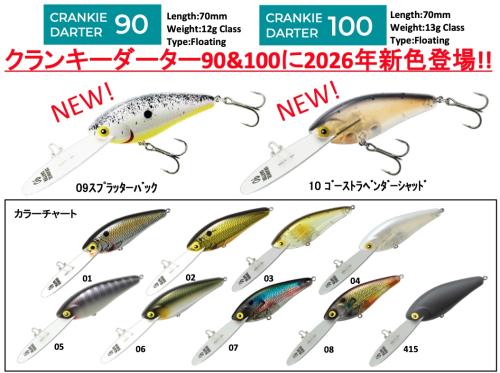クランキーダーターは90と100、リップの違いはあるものの、ともに同様のボディを採用しています。ロールとウォブルのミックスが魅力的な、表層~水面直下を攻略するための90。90よりもやや強めなウォブルで急潜行する、水面直下~ミドルレンジを攻略するための100。あくまでも潜行角度とアクションで使い分けるクランクベイトであり、最大深度はどちらも3m程度となっています。また、クランキーダーターの特徴でもあるアルミ製のリップは、強度を持たせるために超ジュラルミンに進化。さらに当時とは使い方が異なるため、やや重量をアップした仕様となっています。