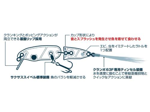 最も特徴的なのがリアボディをポッパー形状にしている点で、移動距離を抑えつつ強い水押しでアピールする。